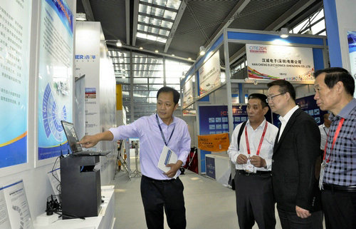 國家工信部電子信息司司長(zhǎng)刁石京蒞臨公司展臺(tái)參觀指導(dǎo),詳細(xì)了解企業(yè)及產(chǎn)品應(yīng)用情況,勉勵(lì)企業(yè)將技術(shù)創(chuàng)新深入開展下去。
